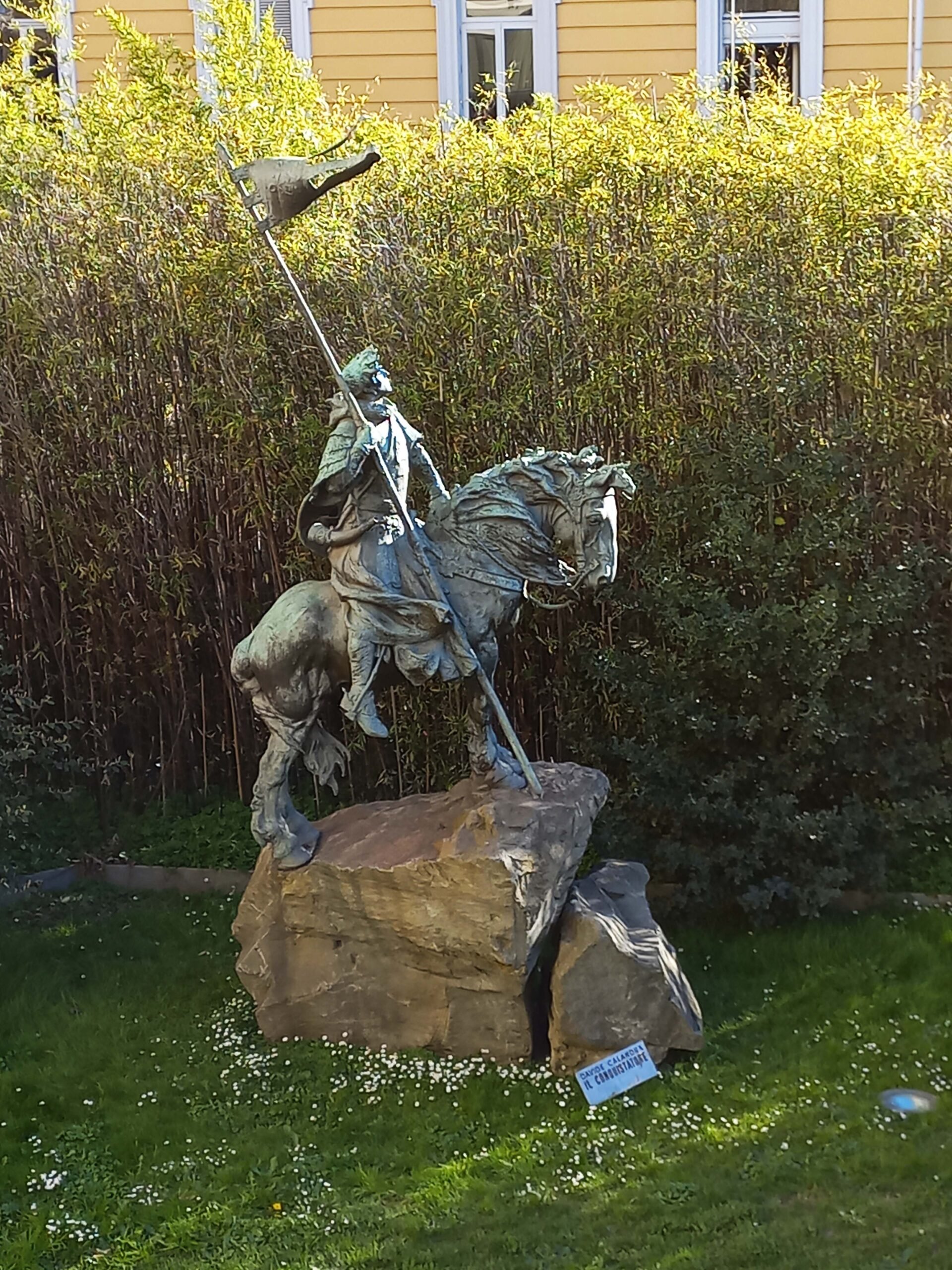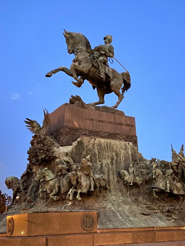 Amedeo di Savoia duca d’Aosta (1845 – 1890), ritratto in divisa sul cavallo impennato, fu realizzato in bronzo da Davide Calandra (1856-1915) e posto nel 1902 nel Parco del Valentino.