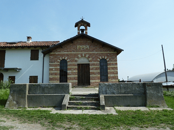 Si gira a sinistra sul sentiero che entra nel bosco e risale verso la località Sinaccio, dove si trova la bella chiesetta dei Santi Cosma e Damiano che appartiene alla parrocchia di Ozzano Monferrato, ma è oggi nel territorio comunale di Casale Monferrato. Citata nel 1118, nel 1670 il vescovo di Casale istituì una compagnia sotto il titolo dei Santi Cosma e Damiano che amministrò la chiesetta fino al XVIII secolo. Caduta in rovina fu riedificata alla metà del ‘700 su iniziativa della comunità ozzanese. Nel 1952 un intervento di restauro mise in risalto elementi di reimpiego d’ epoca romanica. Le pareti esterne presentano interessanti graffiti di antica origine.