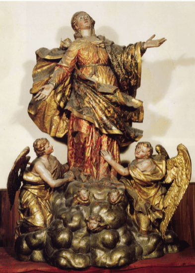 L’altare maggiore marmoreo risale al 1640 e dietro la mensa si trova un gruppo ligneo policromo della Vergine Assunta in cielo di autore lombardo della fine del Seicento.
