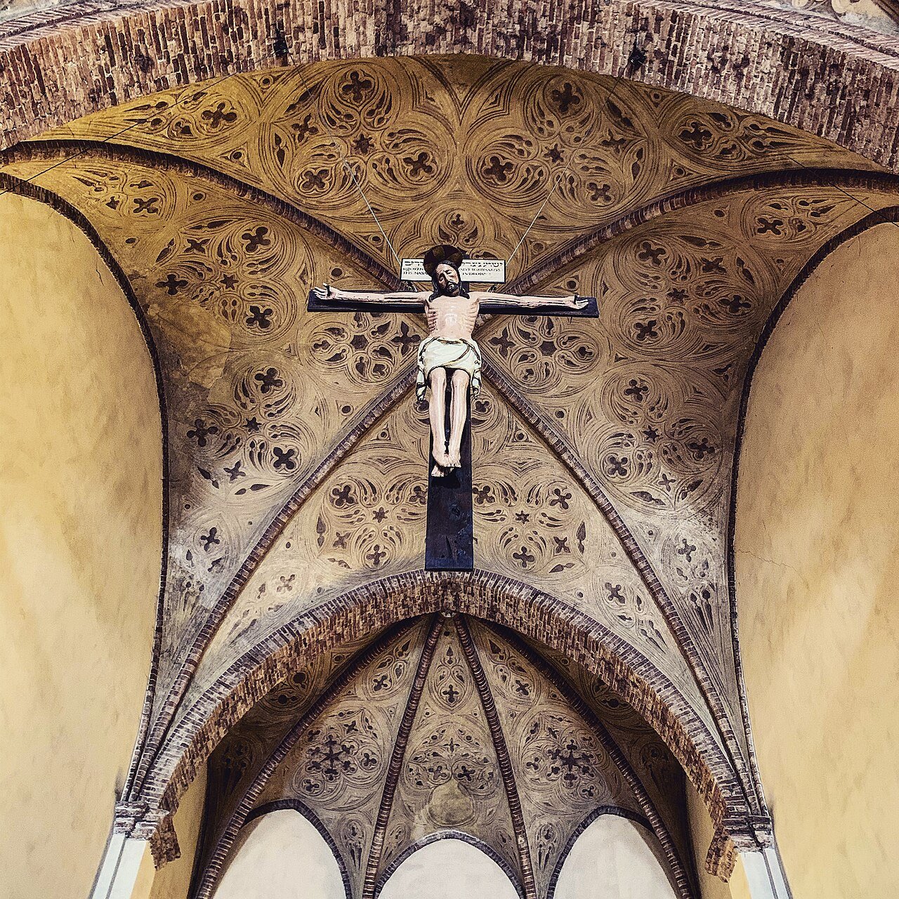 Nella prima cappella sulla destra il grande Crocifisso del XVIII secolo, con ai lati le tele raffiguranti Cristo giudicato nel Sinedrio (metà del XVII secolo) e Cristo deposto dagli angeli, di Luca Cambiaso, fine XVI secolo.