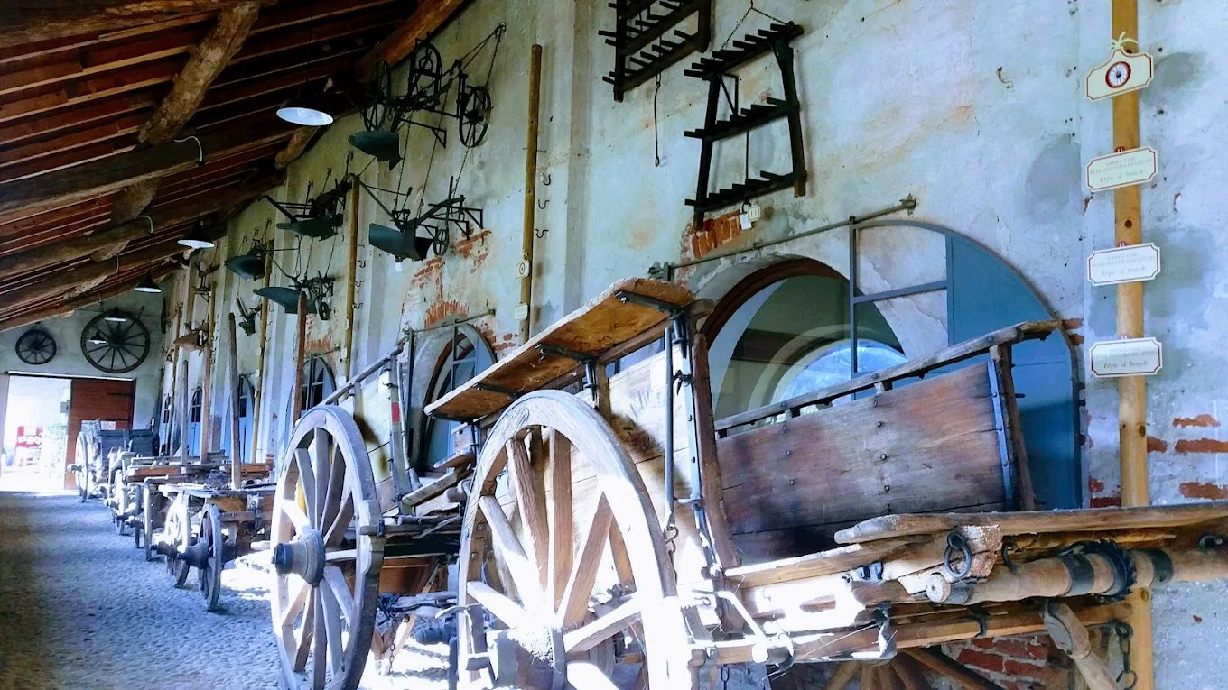 La seconda sezione, più tradizionale, è una galleria di carri, attrezzi e macchine più o meno moderne, per la lavorazione del riso.