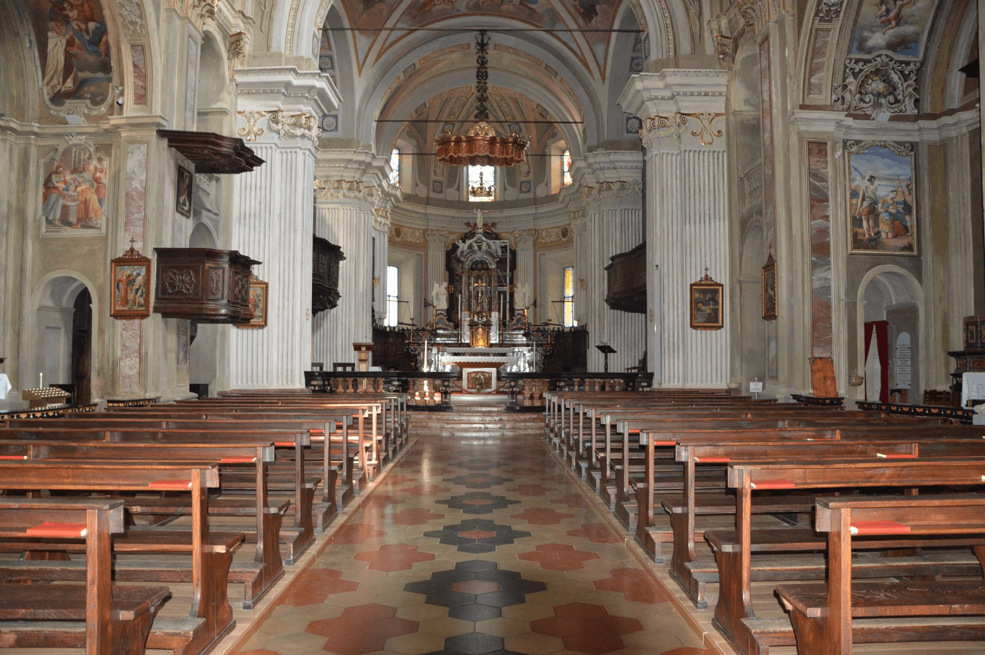 La chiesa disponeva del coro, del campanile, della sagrestia e di alcune cappelle, che avevano quasi la stessa collocazione delle attuali, ma l’edificio nel suo complesso risultava alquanto modesto. Fu nella prima metà del XVIII secolo che vennero effettuati i lavori di ristrutturazione della Parrocchiale, che fu di molto allungata dalla parte del coro, occupando parte del cimitero e quasi per intero riedificata.