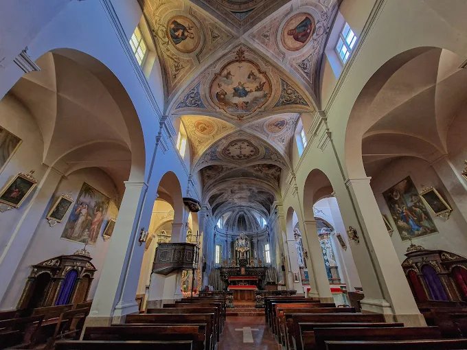 Le cappelle laterali sono dedicate a San Carlo Borromeo e a S. Antonio di Padova, con altari e dipinti cinque-seicenteschi.