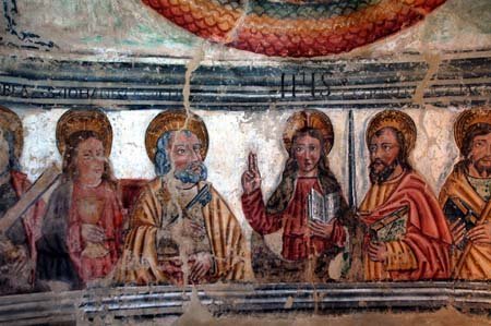 L’interno dell’abside offre un complesso di affreschi risalenti alla seconda metà del Quattrocento con Cristo Pantocratore in mandorla, Evangelisti, e teoria degli Apostoli nella fascia bassa, in discreto stato di conservazione e comunque ben leggibili.