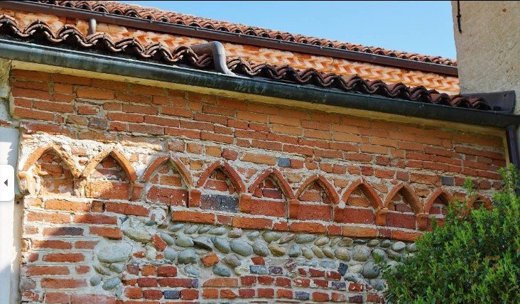 La parrocchiale, già citata in una bolla del 1155, era a navata singola poi fu portata a tre navate in due tempi, il che le conferisce un aspetto anomalo; infatti la navata sinistra è cinquecentesca mente quella destra è gotica, con ampie e basse volte a crociera senza costoloni. All’esterno della medesima rimane, un fregio ad archetti pensili in cotto, diviso in due dalla successiva apertura di una cappella.