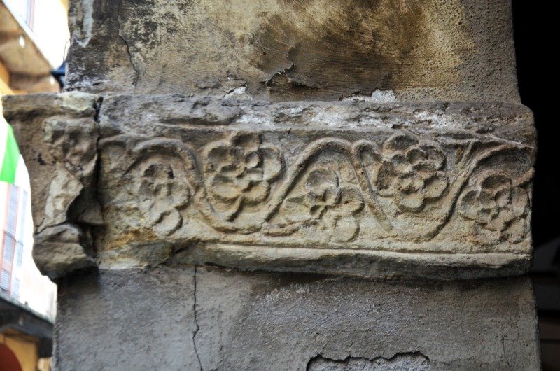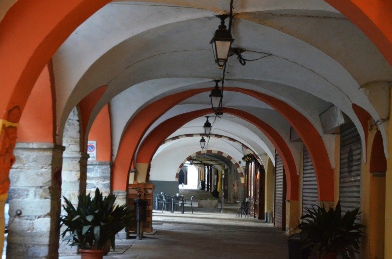 Quasi tutta la via è fiancheggiata da portici: quelli meglio conservati sono sulla sinistra con caratteristici archi slargati. Affiora ancora in qualche punto il caratteristico acciottolato che un tempo pavimentava tutta la via centrale.