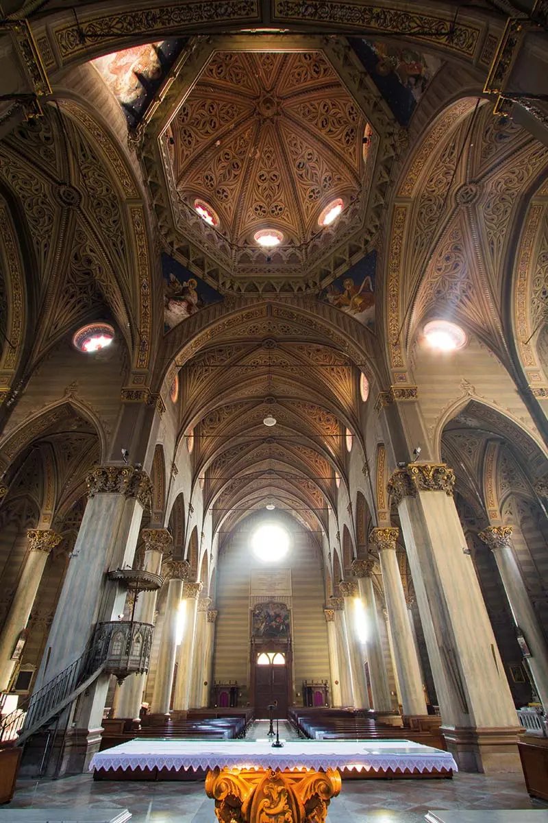 Collocata sulla stessa area una volta coperta dall’antica parrocchiale cinquecentesca, ha una struttura a tre navate: quella centrale, sormontata dalla cupola, e due laterali, lungo le quali si aprono le cappelle di San Giuseppe, San Carlo, Nostra Signora del Sacro Cuore, del Battistero da un lato, e, della Madonna del Rosario, di Sant’Antonio, del Crocifisso e della Madonna di Lourdes dall’altro.