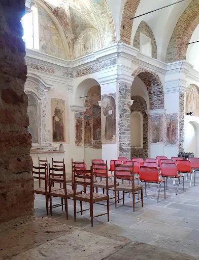 Sulla parete sinistra del presbiterio si trova un frammento di affresco risalente alla prima metà del XV secolo, raffigurante la Madonna con il Bambino tra San Pietro e San Paolo, incorniciati da tendaggi retti da angeli. Un’altra opera di notevole pregio si trova sulla destra, dove un affresco del XVII secolo rappresenta la Madonna di Loreto affiancata da San Carlo, San Giovanni Battista, San Bartolomeo e Sant’Agata, insieme al committente dell’opera.