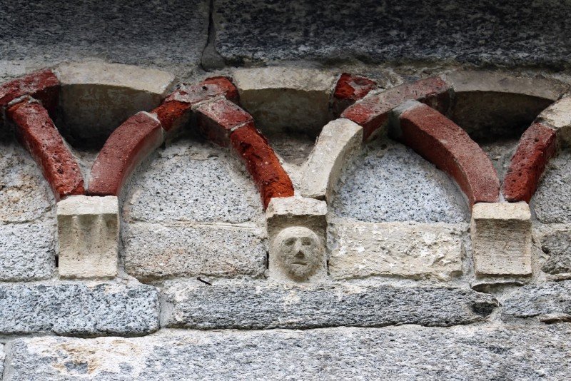 Di particolare effetto scenico le mensole degli archetti ed i capitelli della loggetta decorati con rudimentali teste d’animali e di uomini.