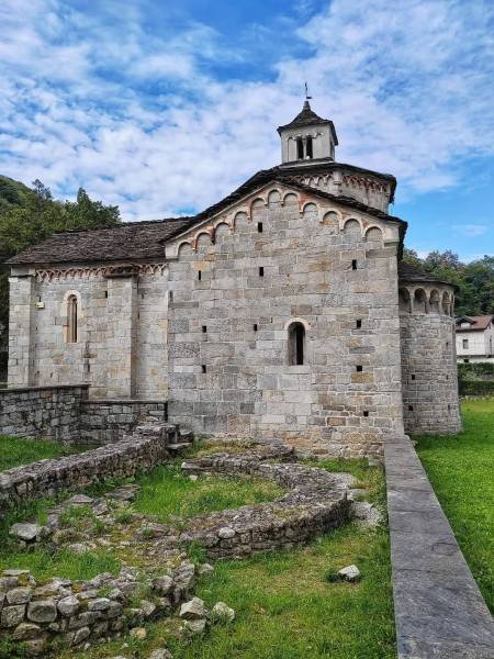Si tratta di chiesa romanica a croce latina, con tiburio ottagonale e lanternino, ornato da una monofora e da tre bifore. L’edificio è realizzato con conci in serizzo ed in granito.