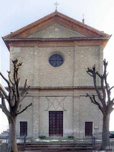 Nel registro inferiore si aprono, nei tre campi definiti dalle lesene, il portale principale e due portali secondari privi di strutture decorative. Al centro del registro superiore si apre un oculo di modeste dimensioni.