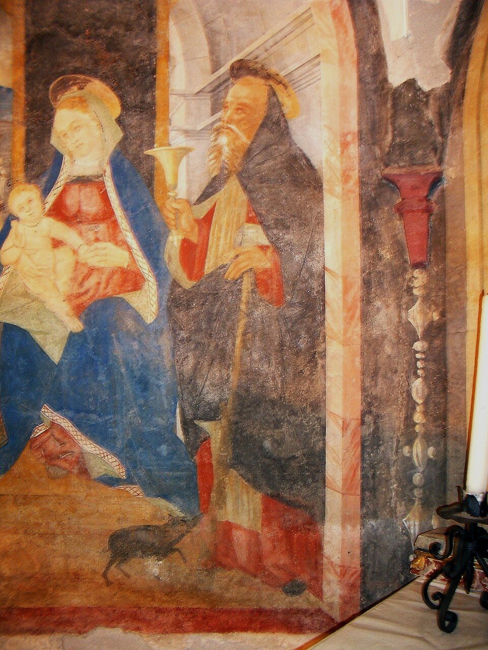 Il dipinto a sinistra presenta, a destra della Madonna, la figura di Sant’Antonio abate (vedi scheda).