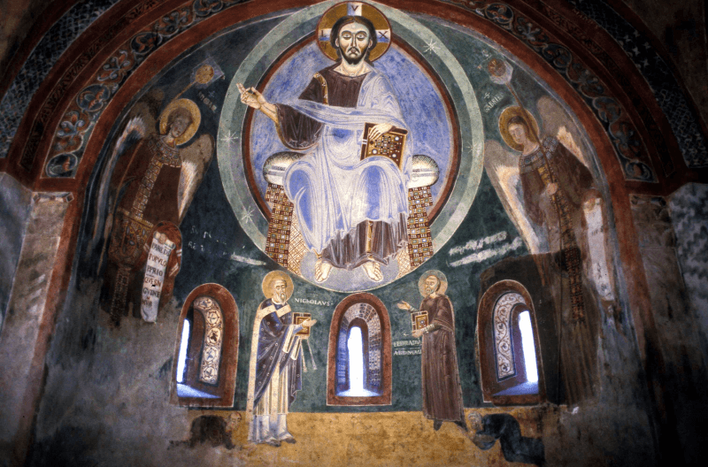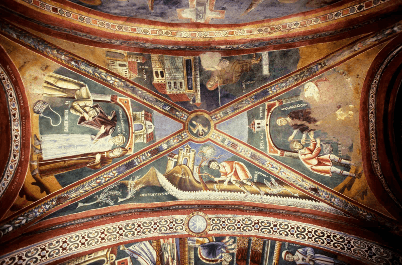 All’interno dell’abbazia si trovano opere d’arte straordinarie, tra cui cicli affrescati che decorano le pareti della cappella di Sant’Eldrado, raffiguranti scene della vita di San Eldrado e di San Nicola, che evocano l’importanza della fede e delle tradizioni locali. Questi affreschi, realizzati nei secoli passati, sono una testimonianza del legame profondo tra la spiritualità e l’arte sacra che caratterizzava la vita monastica.