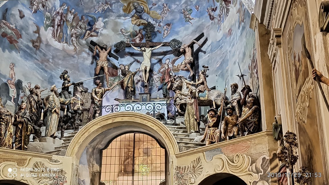 Nella parte superiore dell’abside si colloca l’altare della Natività ed il grandioso complesso ligneo del Calvario. Realizzato da artisti fiamminghi alla fine del Cinquecento, il gruppo scultoreo comprende 21 figure umane e due cavalli a grandezza naturale.