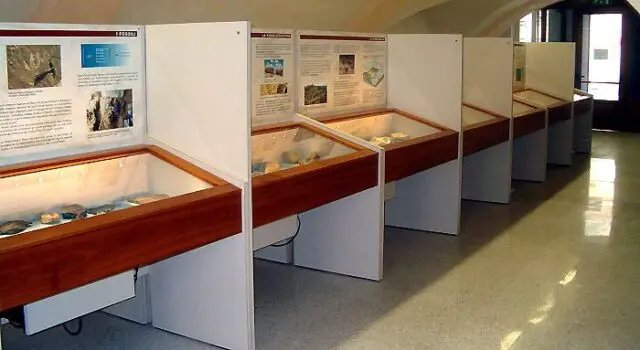L’allestimento permette di osservare i fossili attraverso un percorso attento sia alle principali tematiche generali, sia agli aspetti più specificamente connessi all’evoluzione geologica e paleontologica del Piemonte meridionale.