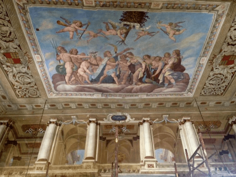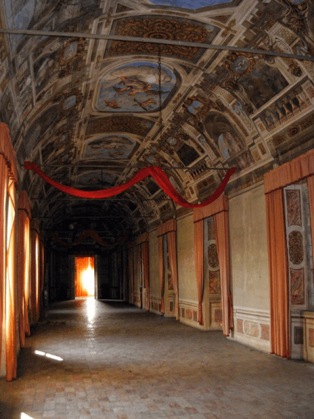 Le sculture, la fontana, gli scaloni, i grandi camini e le cantine sono alcuni elementi che concorrono ad animare il luogo austero rendendolo profondamente suggestivo.
