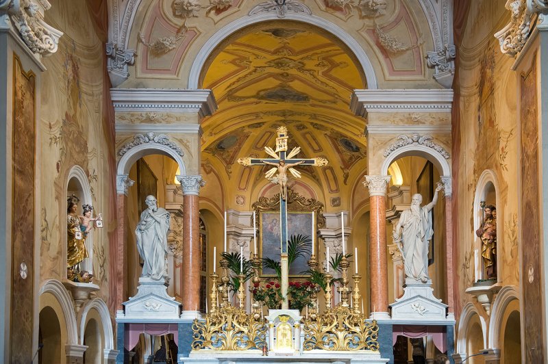 Nell’abside retrostante all’altare è presente un coro con sedute lignee e sopra all’ingresso una cantoria con organo realizzato nella seconda metà dell’Ottocento.