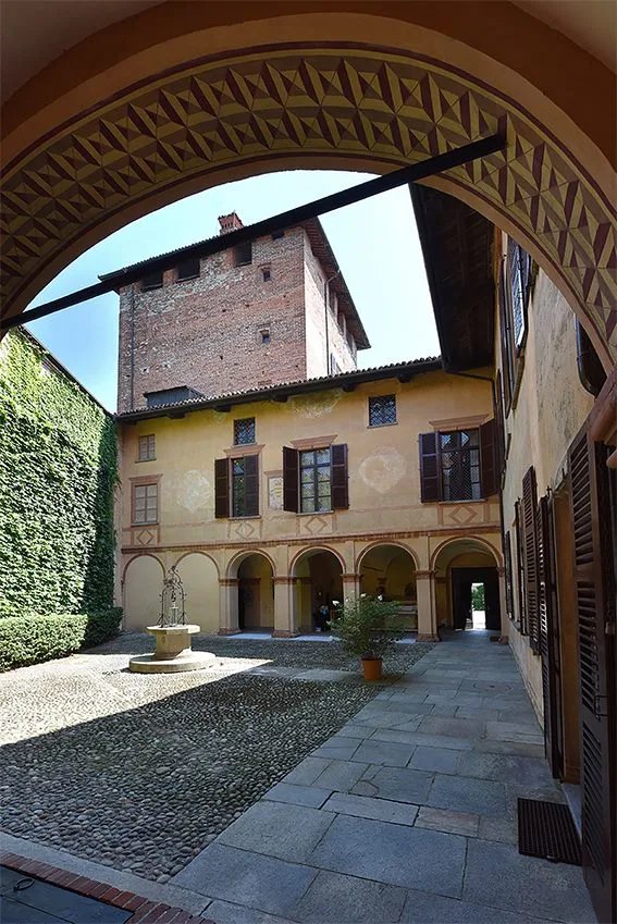 Il torrione a pianta quadrata è la parte più antica del castello; la parte inferiore, interrata, presenta una volta a botte in pietra.