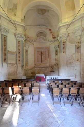 Internamente la chiesa presenta un’unica navata a pianta circolare sormontata da una cupola. Il presbiterio presenta una pianta a forma ellittica.