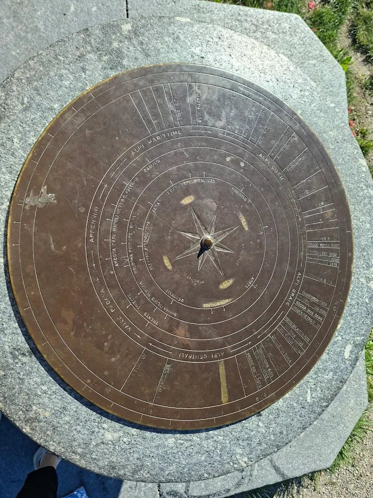 Accanto al faro vi è una Tavola di Orientamento in granito ricoperta da una lastra di ottone che riporta una rosa dei venti e la direzione delle principali vette dell’arco alpino da lì visibili nelle giornate serene.