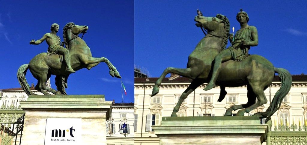 Castore e Polluce simboleggiano che il re sia saggio e abile a guidare la nave dello Stato e fanno da “guardiani” a Palazzo Reale.