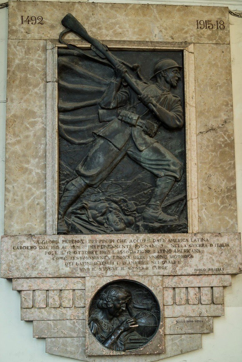 Il monumento ricorda gli Italiani emigrati in America latina che parteciparono come volontari alla Prima guerra Mondiale.