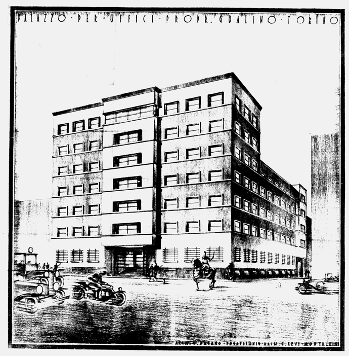 Nel 1928 Riccardo Gualino commissionò la progettazione agli architetti Giuseppe Pagano e Gino Levi-Montalcini per la realizzazione di un edificio di nuova concezione che avrebbe dovuto ospitare unicamente uffici del Gruppo Gualino. Un esempio di un’architettura moderna e anti-monumentale razionalista completata da soluzioni tecniche e funzionali che la resero uno dei maggiori esempi di Razionalismo italiano.