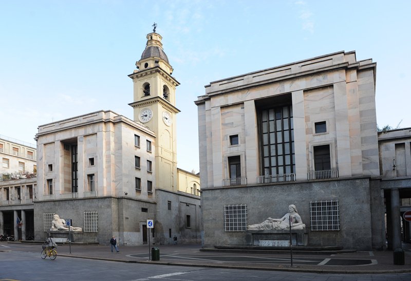 L’odierno aspetto razionalista lo si deve alla ristrutturazione del 1935 prevista dal progetto di Marcello Piacentini ed avvenuta in pieno periodo fascista, riguardante il secondo tratto di via Roma e della zona circostante. Inizialmente furono progettate le statue di Benito Mussolini e di Vittorio Emanuele III di Savoia, più due fontane poste sul retro delle due chiese, con le allegorie antropomorfe vagamente neoclassiche dei fiumi Po e Dora Riparia; tuttavia solo queste ultime due sculture furono realizzate dallo scultore Umberto Baglioni nel 1937. La piazzetta fu quindi rinominata “piazza delle Due Fontane”.