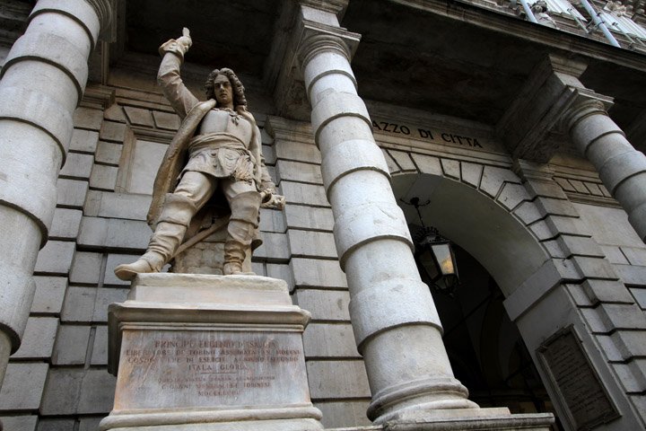 TORINO. Statue di Eugenio di Savoia e di Ferdinando di Savoia sulla facciata del Palazzo di Città