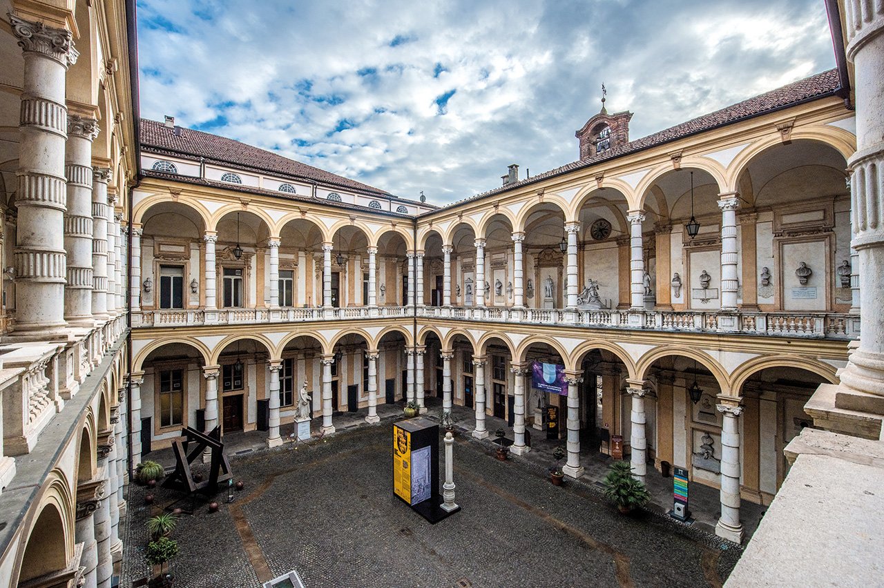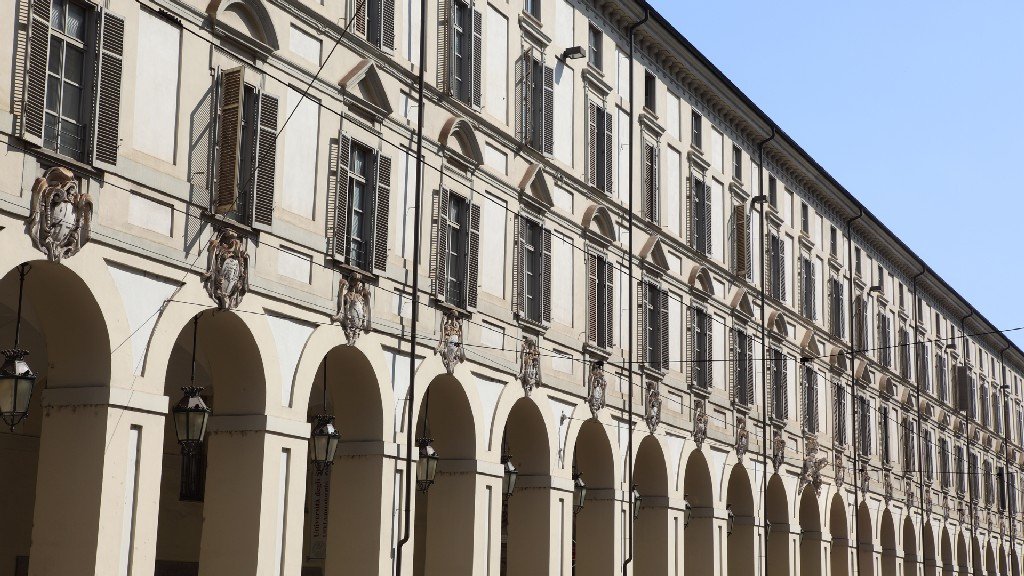 Al numero 17 sorge il palazzo dell’Università, un edificio di notevole valore storico-artistico che fu costruito in seguito alla riforma sabauda dell’inizio del Settecento per volere di Vittorio Amedeo II . La Regia Università venne inaugurata ufficialmente nel 1720, inizialmente progettata da Michelangelo Garove seguito da Giovanni Antonio Ricca e terminata da Filippo Juvarra con il progetto del grandioso cortile porticato ornato di statue di sovrani, scienziati ed intellettuali. Un ampio loggiato su due ordini di colonne si apre intorno al cortile rettangolare interno, mentre due scaloni gemelli, posti agli angoli della manica settentrionale, consentono l’ascesa al piano nobile, un tempo sede della didattica.