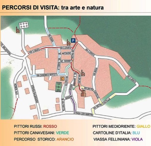 Una numerosa rappresentanza di artisti della ex Unione Sovietica ha abbellito i muri delle case del centro storico con pannelli dipinti, una sorta di museo ‘en plein air’, che ospita anche opere di alcuni artisti del Medio Oriente e canavesani.