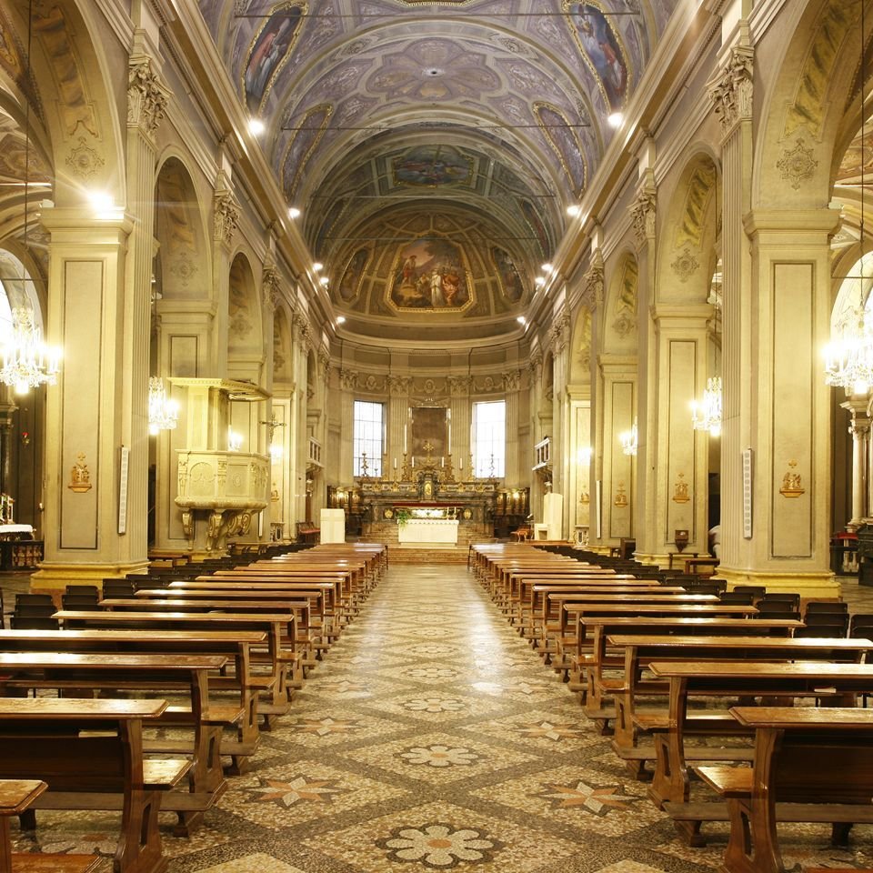 La costruzione iniziò nel 1574 e la consacrazione avvenne nel 1583. Conserva preziose opere d’arte.