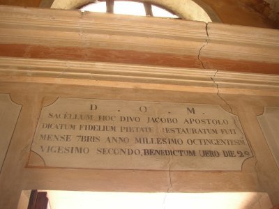 Il documento cita anche un quadro raffigurante S. Giacomo e diversi arredi religiosi; inoltre “Si canta messa nel giorno della Festa e nel giorno di S. Bovo” (invocato contro le epidemie del bestiame).
