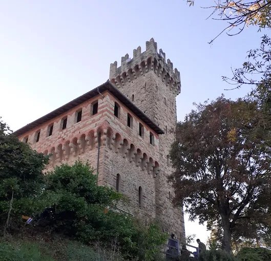 Il Castello domina il borgo medievale e si presenta come un massiccio parallelepipedo coronato da merli ghibellini e alleggerito da eleganti bifore, con un’alta torre merlata d’angolo, da cui si può godere un ampio panorama.