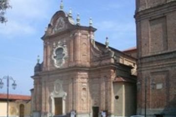 La chiesa originale era costituita da due parti, una ad una sola navata con sei cappelle laterali inserite nel muro; la seconda a tre navate con l’altare maggiore in fondo. Il primo ampliamento fu del coro nel 1710; il secondo ampliamento è stato quasi un rifacimento della chiesa. La chiesa venne portata a tre navate ed arricchita di una degna facciata su disegno di Costanzo Michela di Agliè.