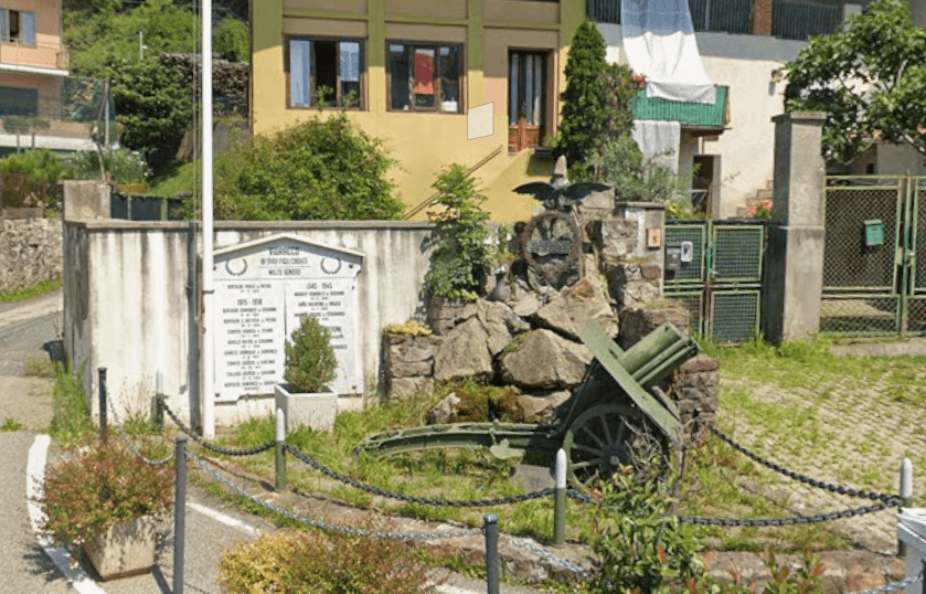 VIDRACCO (TO). Monumento ai CadutiIl monumento ai Caduti di tutte le guerre ha un cannone e una lapide con i nomi dei soldati vidracchesi caduti. StoricoEtà contemporaneaMonumento / RappresentazioneA cura di AC