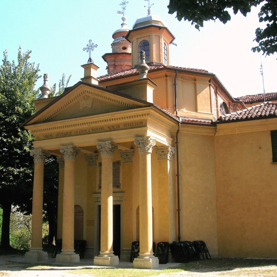 CHERASCO (CN). Santuario della Madonna delle GrazieL’attuale edificio si colloca nel sito di un’antica chiesa dedicata a San Giovanni ad Fontes, forse del XIII secolo. L’affresco della Vergine col Bambino e angeli, probabilmente del XV secolo, dipinto su un pilone, fu poi inglobato e murato nell’edificio di San Giovanni ad Fontes. L’affresco fu casualmente scoperto nel 1760 durante lavori di ristrutturazione e si decise di erigere in onore della Vergine una nuova chiesa. ArtisticoReligiosoEtà modernaMedioevoBaroccoRinascimentoEdificio religiosoA cura di AC