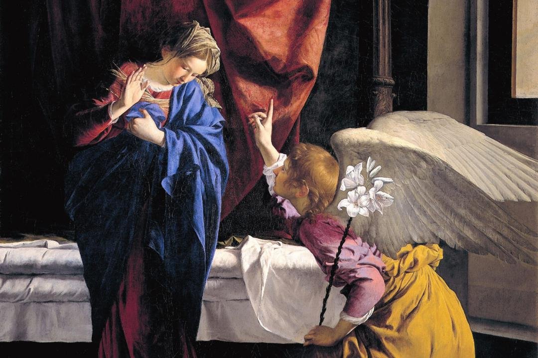 Il tema del viaggio guida l’esposizione: un itinerario che segue Orazio Gentileschi tra Roma, Genova, Parigi e Londra, sulle tracce di committenti e regnanti, da Carlo Emanuele I di Savoia a Maria de’ Medici, da Filippo IV di Spagna a Carlo I d’Inghilterra. Fulcro del percorso la grande «Annunciazione» del 1623, realizzata per il duca di Savoia, capolavoro riconosciuto dalla critica tra i vertici assoluti del maestro toscano. L’opera è al centro di un allestimento che unisce il nucleo di dipinti conservati nei Musei Reali a prestiti da collezioni internazionali, a testimonianza della politica di scambio e valorizzazione promossa dai Musei Reali. Dipinto della maturità di Orazio Gentileschi (1563-1639) l’«Annunciazione» è un punto di sintesi della sua poetica, sospesa tra naturalismo e ideale classico. L’artista, ormai lontano dalle tensioni drammatiche del primo Seicento romano, traduce il linguaggio caravaggesco in una dimensione di armonia e chiarezza formale, facendo della luce un elemento strutturale della composizione, veicolo del divino. La scena è costruita su un equilibrio rigoroso di piani e diagonali. La Vergine sul bordo del letto, il capo reclinato, la mano alzata sul petto. Di fronte a lei, l’angelo inginocchiato solleva un dito verso l’alto, collegando lo spazio terreno alla sfera celeste. Il grande drappo rosso che occupa la parte superiore del dipinto agisce come quinta teatrale: il suo movimento avvolgente concentra la luce e definisce la profondità dello spazio. L’illuminazione, proveniente dalla finestra, colpisce i volti, le mani e le stoffe. L’attenzione al dato realistico, evidente nel panneggio e nella resa dei materiali, si unisce a una tensione di ordine intellettuale e morale. Gentileschi non mira alla teatralità ma a una pittura meditativa, fondata su misura e controllo, in cui il miracolo si manifesta nella compostezza del quotidiano, con una pittura lenta, cesellata, quasi miniata.