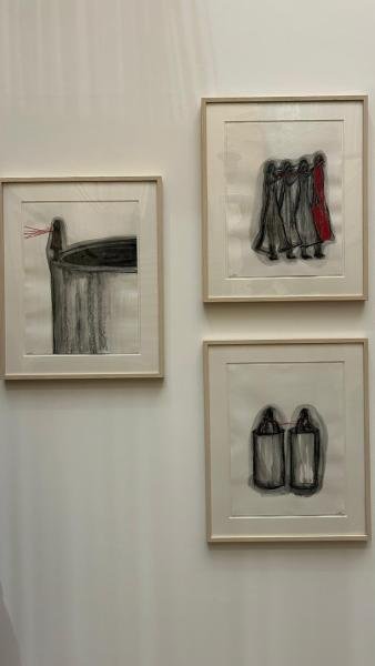 Tra le opere che catturano maggiormente il pubblico spiccano infatti, le grandi installazioni ambientali che occupano intere sale. I filamenti rossi, intrecciati come vene o nervature emotive, avvolgono barche o strutture di legno suggerendo viaggi incerti e destini sospesi. Accanto a queste, la poetica del filo nero esplora atmosfere più intime e silenziose, spesso legate al lutto, alla memoria ed a ciò che rimane dopo una perdita. In queste opere, lo spazio diventa una sorta di luogo mentale in cui lo spettatore può entrare fisicamente, muovendosi fra i fili come all’interno di una storia non raccontata.